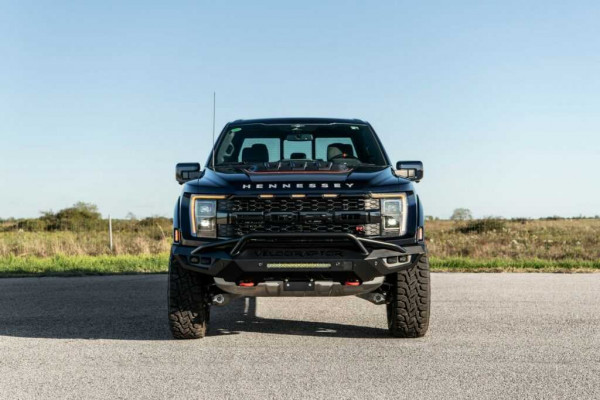 Moreover, the increased length of the Ford has expanded the bed from 5.5 feet to 8 feet, amplifying cargo capacity by more than 45%. Several other aftermarket components have been incorporated, including distinctive front and rear bumpers, LED off-road lighting, fresh badges, and an abundance of Hennessey branding to emphasize that this is anything but a typical F-150.
