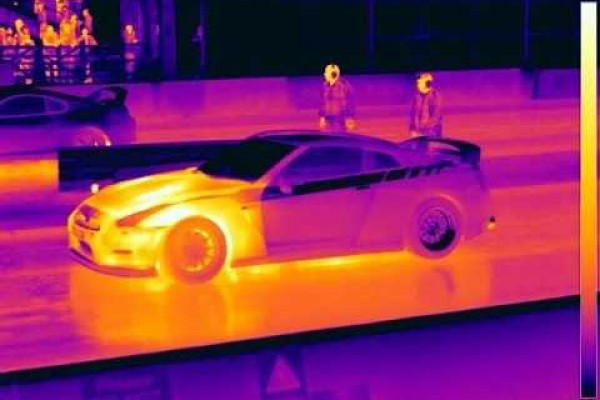You can see how quickly the tires are hot after a little burnout, or how cold is the injection of NO2 (nitrogen) is blown when compared to temperatures outside! You will be surprised to see what a Nissan GT-R infrared, or what the temperature may have left traces on the asphalt after the car! It is downright amazing!