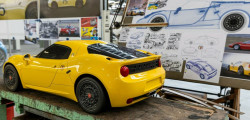 Stellantis Heritage remained tight-lipped about the new sports car's specifications, but they did provide images and a 1:3 scale model. It takes design cues from the iconic Alfa Romeo 4C and looks very similar to that vehicle, but with updated carbon fiber bodywork. A roof-mounted scoop, a vented hood, and minimalist headlamps are also there. Meanwhile, a distinctive back end, featuring a centrally positioned exhaust and a vented rear fascia with "ABARTH" branding, completes the look.