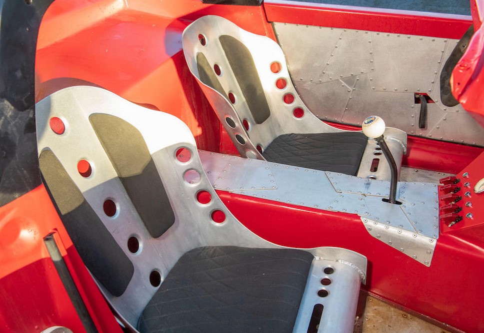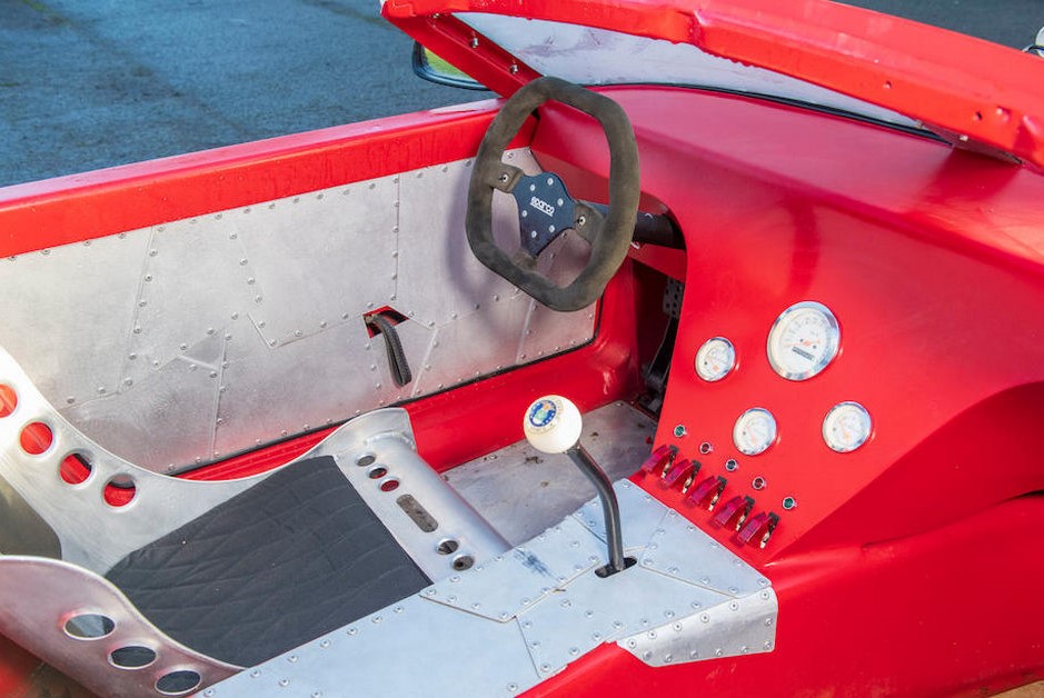 Unfortunately, the hotrod isn't street-legal, but Danton still, equipped it with coilovers which allows an adjustable height. The interior features a set of alloy seats, a flat-bottomed Sparco Steering wheel, simple switches and gauges, and a prominent shifter.