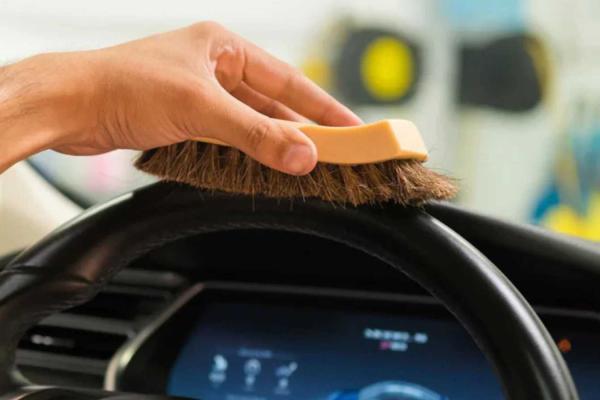The fix isn’t dramatic at all. Park somewhere out of the sun, grab whatever you already have lying around: a soft brush, a couple of microfiber towels, something gentle you’d normally use on interior surfaces (leather cleaner if the wheel’s wrapped). Knock the loose dust off first. Don’t go after it like you're sanding a table — especially leather. Just let the brush lift whatever’s sitting on top.