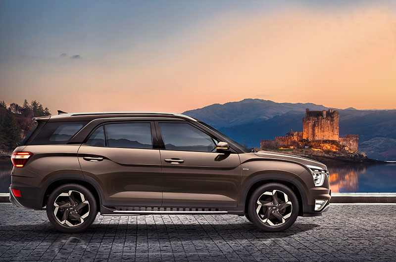 You can easily spot the similarities between Creta and Alcazar models. the most striking is the bodywork and colored C-pillar accents. Nevertheless, the Alcazar has its original features starting with a revised grille and unique lighting units. Also, the Indian crossover has a wheelbase stretched by 5.9 inches (150 mm).