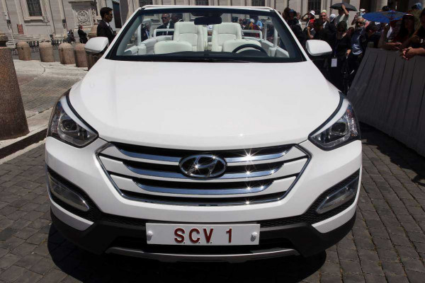 Hyundai delivered the most recent popemobile. It is a Hyundai Santa Fe that was specially modified in a convertible version.