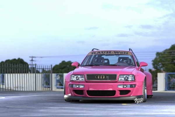 Inspired by RWB's Porsche designs, Abimelec Design gave this crazy Audi RS2 a rosy Ruby Stone Red paint job and fitted it with wide front and rear wheel arches.