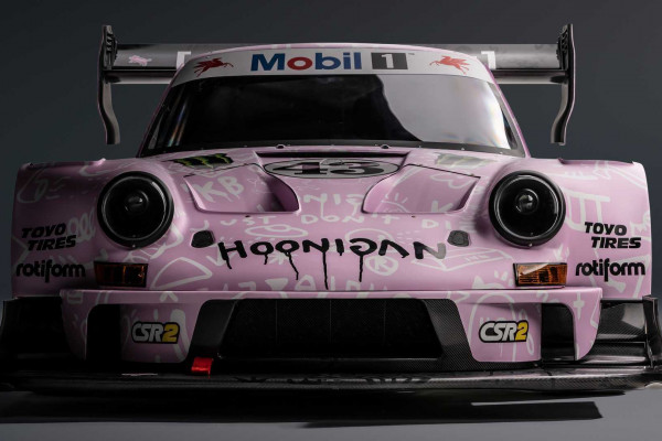 The Hoonipigasus name comes from the car's paint job. The design was developed by street artist "Trouble" Trevor Andrew as a reference to the "Pink Pig" 917/20 of 1971. The rest is provided via cooperation with Mobil 1.