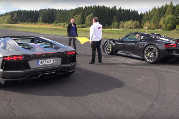 Incredible race between Lamborghini Aventador Pirelli and Porsche 918 Spyder!