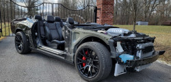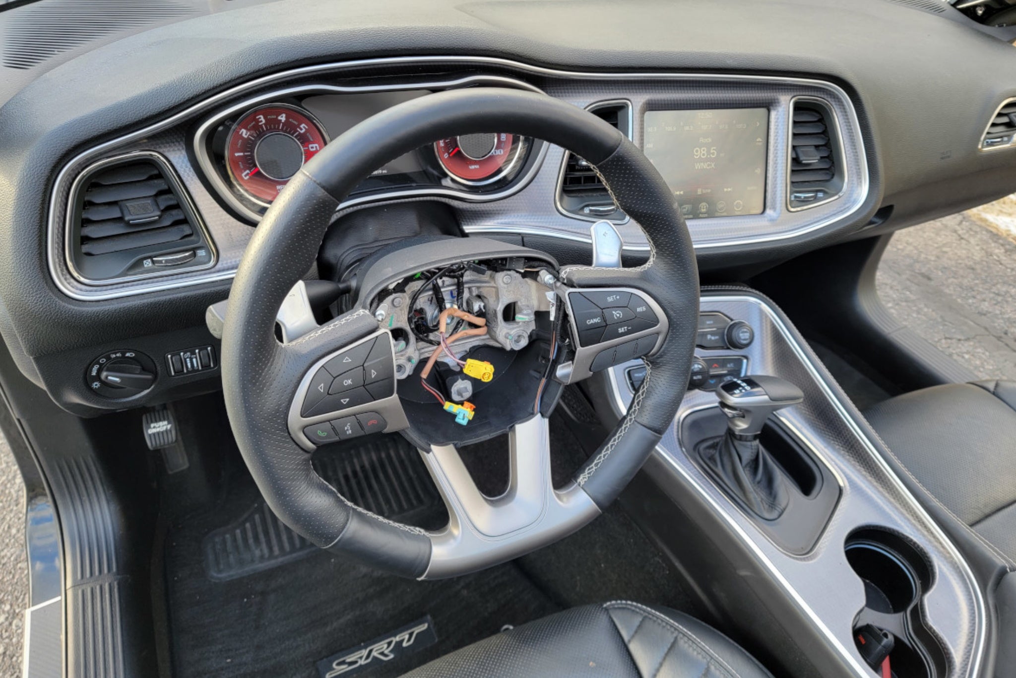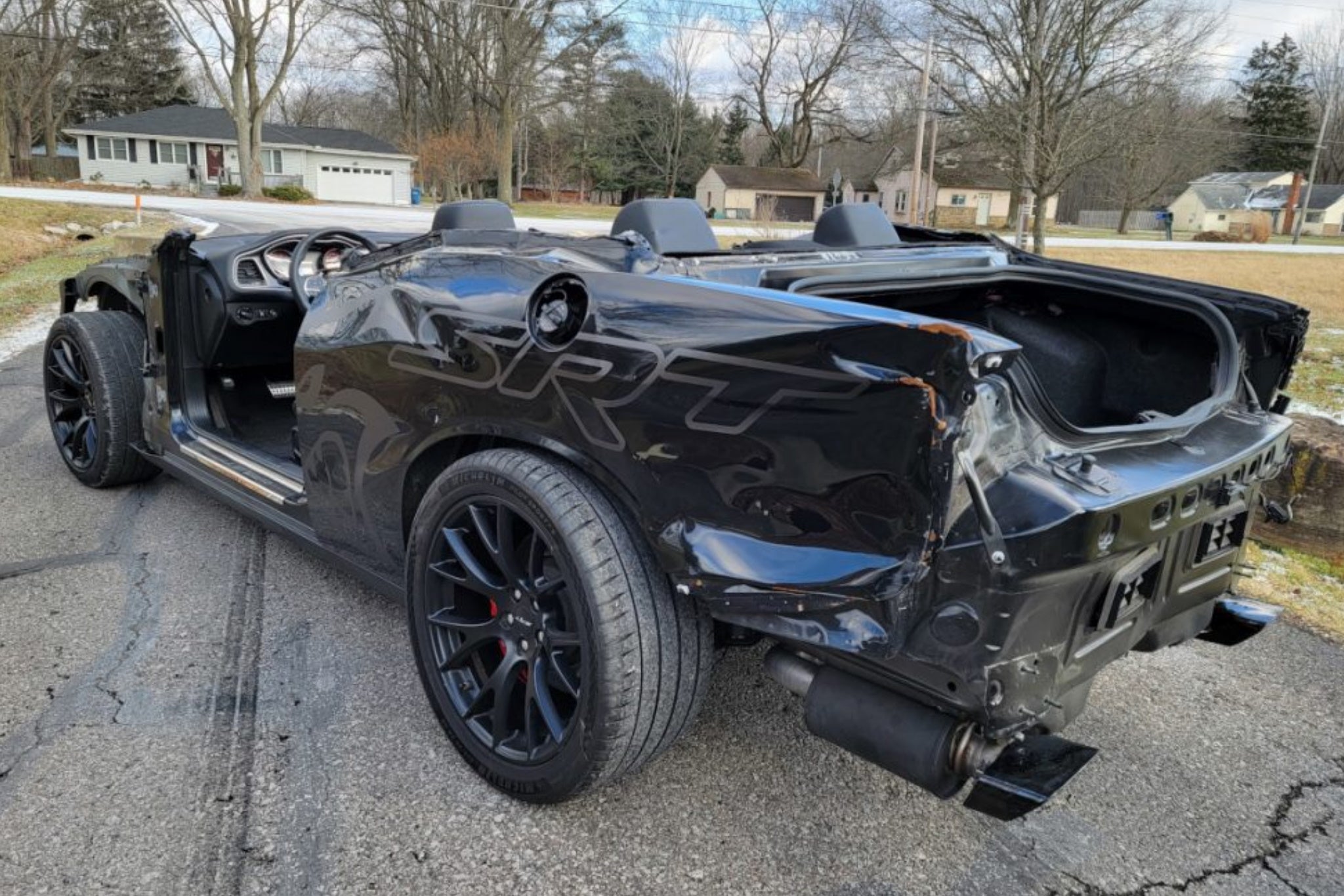 There are no doors, no roof, and no windshield on it. Some of the damaged sheet metal on the body of the car indicates that it was involved in an accident. This 2015 Challenger, on the other hand, is perfectly safe to operate. According to the listing's video, it's capable of going at least a few hundred feet in one direction on its own.