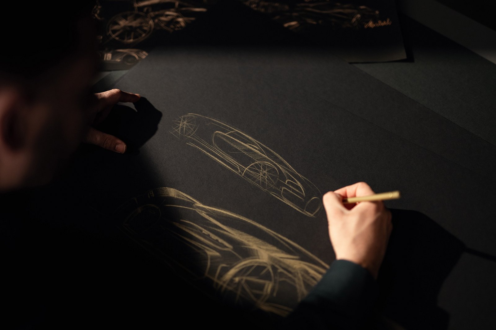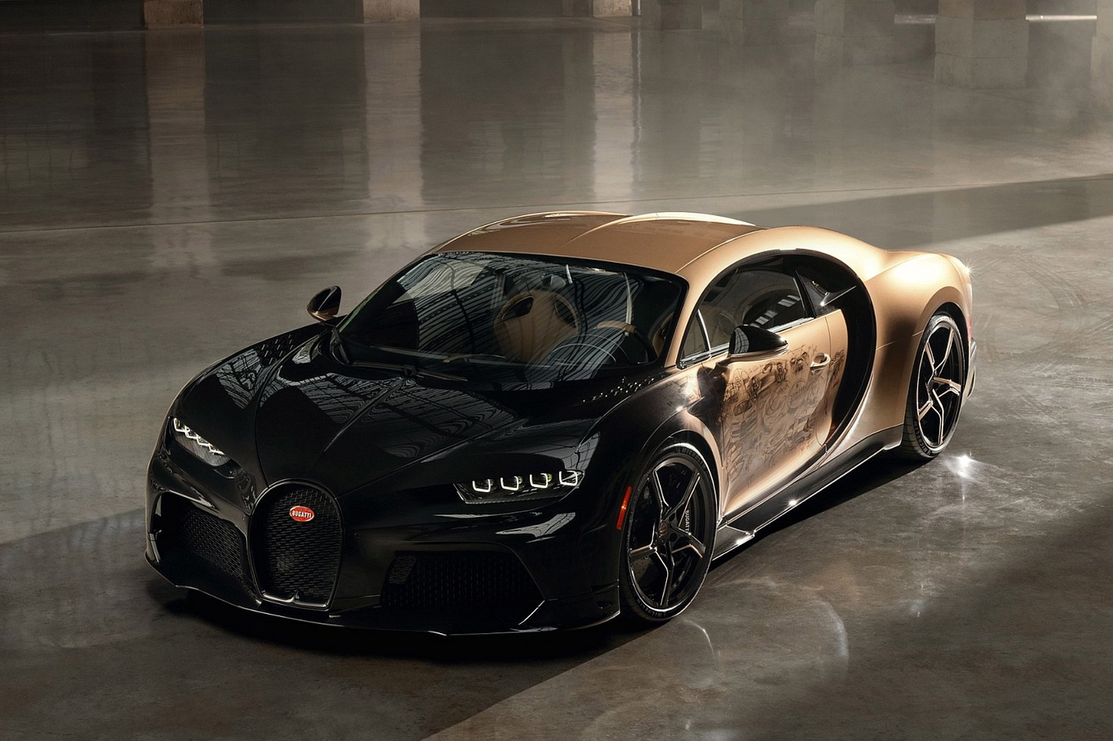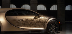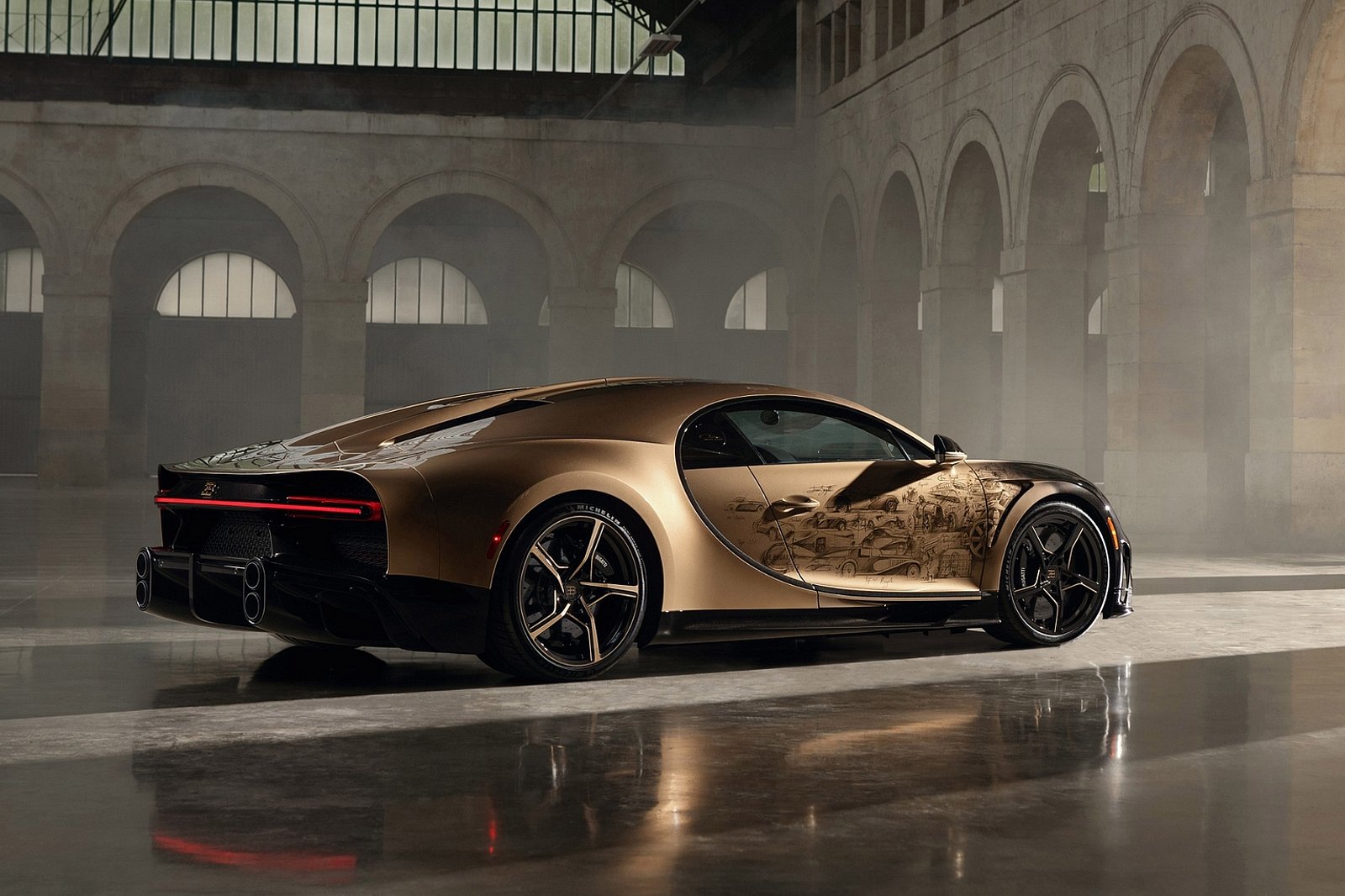 The notion evolved as a canvas for 45 hand-drawn sketches of Bugatti's renowned vehicles, straight onto the car's surface, exhibiting precise details and unrivaled craftsmanship.