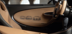 Inside, each door panel features three Bugatti insignia that have been carefully hand-painted onto the leather. The "Golden Era" lettering complements the bottom of the rear wing, while hand-written "One-of-One" motifs add to the vehicle's rarity.