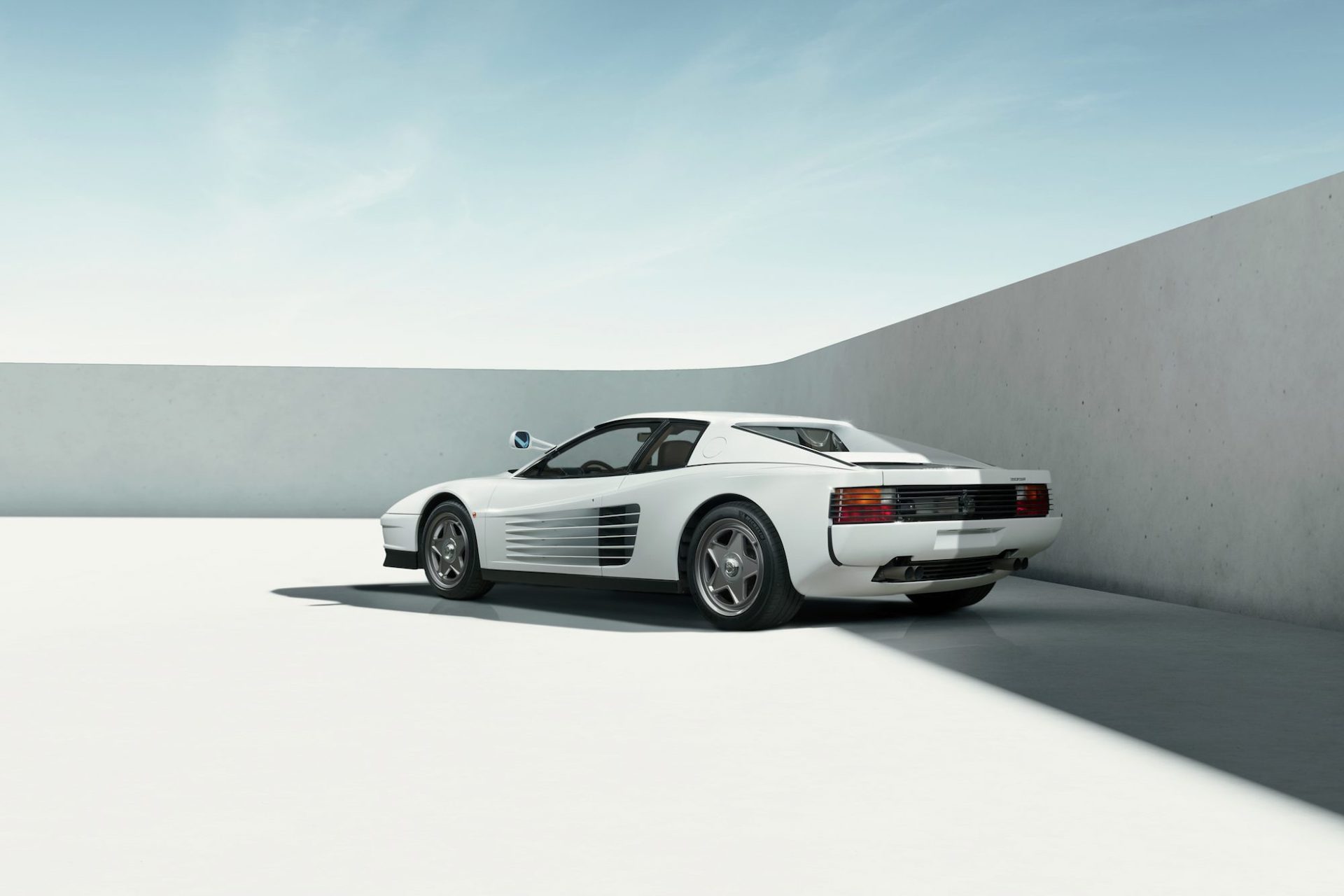 Power is boosted from 390 hp to 500 hp, torque is up from 96 lb-ft to 443 lb-ft, and the completed product tops out at 201 mph with fifth gear set in the open-gate manual gearbox, eclipsing the original Testarossa's 186 mph peak speed.