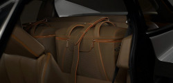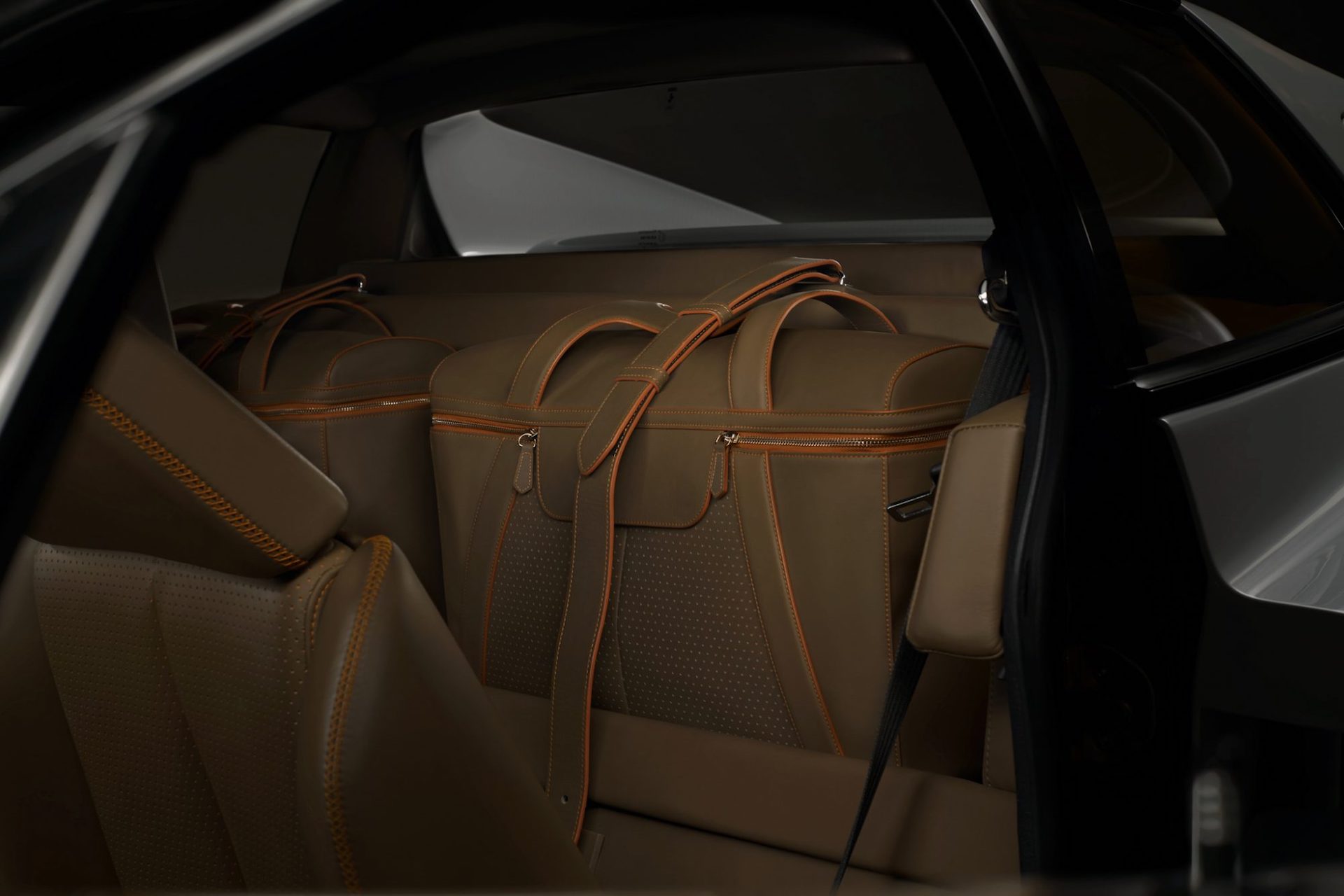 Beautifully stitched leather, a lovely set of fitted luggage cases for the area behind the seats, and controls for the exhaust, dampers, and traction control can all be found on the inside. The culminating treasure is a 1980s-style carphone that has been adapted to serve as a Bluetooth phone.