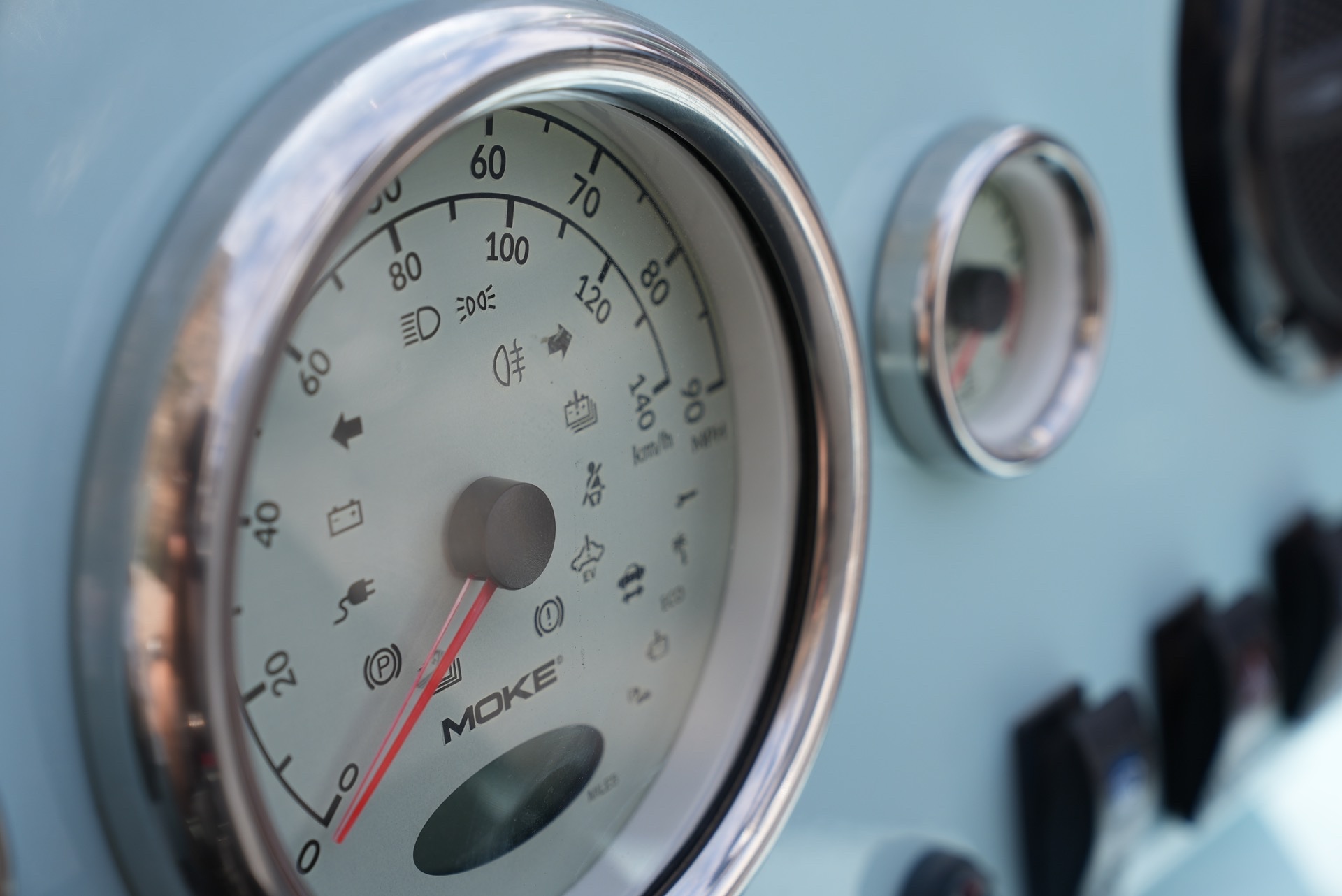 The back wheels of the electric Moke Californian, which will be manufactured in the United Kingdom, will get power from a 33 kW (44 horsepower) engine. It can reach a speed of about 34 miles per hour in only 4.3 seconds, which is not bad at all.