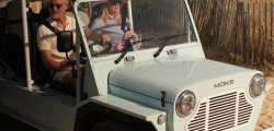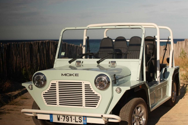 In the United States, the Moke hasn't been seen for 40 years, but now it's back—with a major twist. This time around, the EV can go up to 50 mph and has a range of 75 miles, making it suitable for use on public roads. The Moke Californian is an all-electric version of the original Mini Moke.