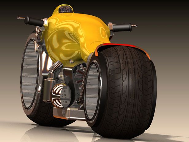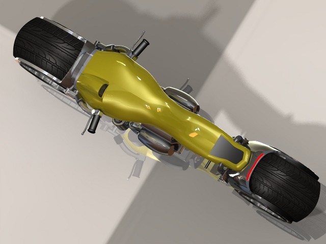 The concept incorporates a powerful big sized engine and positions the biker similarly to a sports bike but doesn't put too much pressure on him. The seat allows the rider to have a comfortable riding position and rest in the fuel tank.
