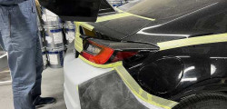 Similarly, the Japanese tuner's Subaru BRZ kit is almost finished and is just as severe as the GR 86's. It features wide front and rear wheel arches as well, but a somewhat modified front bumper with distinctive air intakes and a noticeable splitter. Side skirts, a custom bumper, and a swan neck rear wing are among the other alterations.