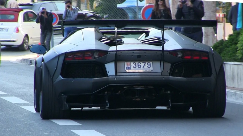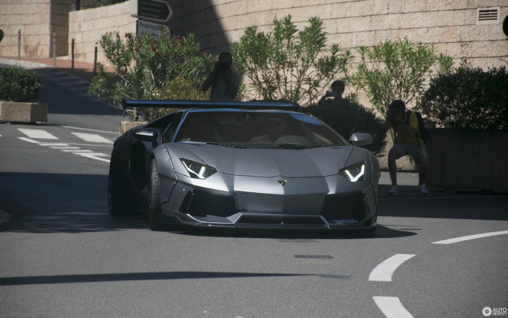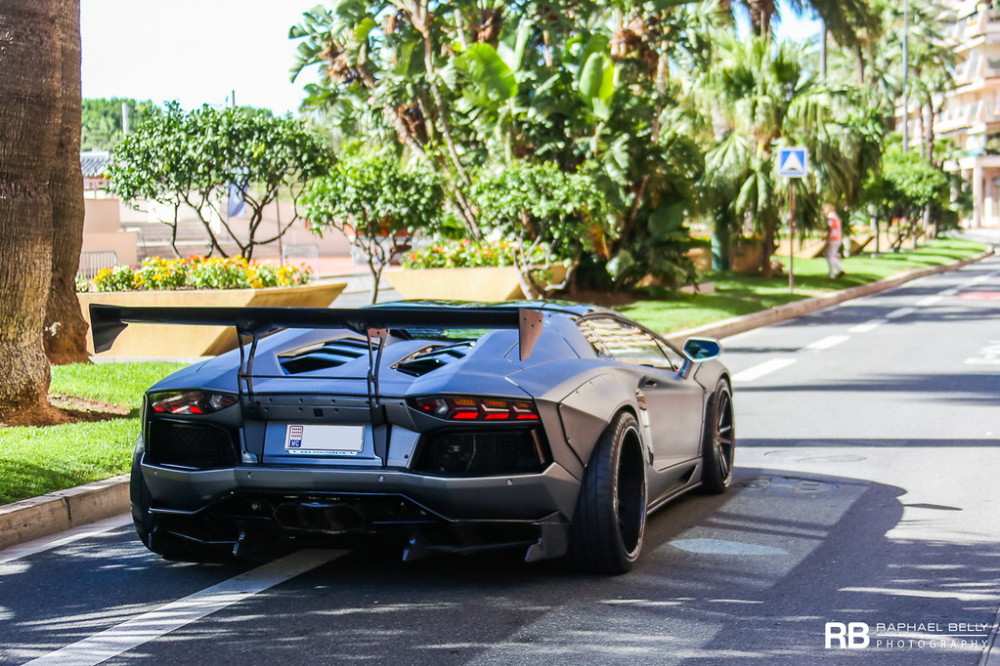 Most likely, the 6.5-liter V12 engine kept its original specs: 720 hp (0-100 km/h in 2.9 seconds, 350 km/h), but the aesthetic side receiving a Liberty Walk treatment: yellow was dropped and was adopted special light blue, the body was widened, got larger wheels and a huge spoiler.