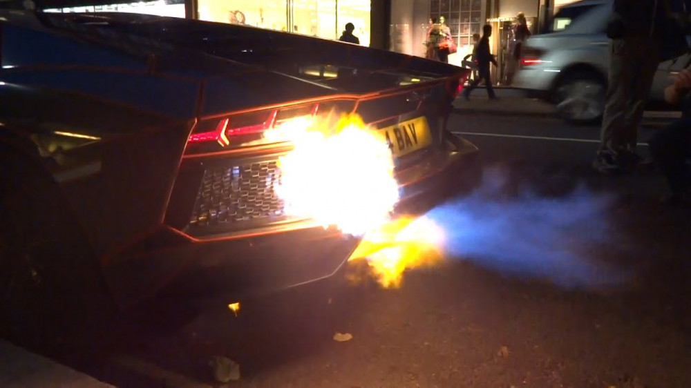 Supercar owners love to make noise in London. They like burning tires, leaving rubber marks on the asphalt, and, lately, shooting flames! This time it was a Lamborghini Aventador fitted with Frequency Intelligent Exhaust which gathered a large crowd to hear it and watch it.