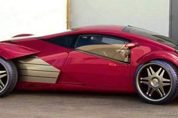 The design is very unusual, reminding a muscle car, with strange proportions that seem to hide which is the car's front or rear side.
