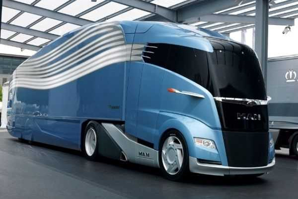 The shape is sleek and this aims to help the vehicle literally cut the air and thus, have a better fuel consumption. Tests showed that there is an economy of up to 25% of the fuel consumption compared to a ordinary truck of 40 tons, working on the same kind of engine.