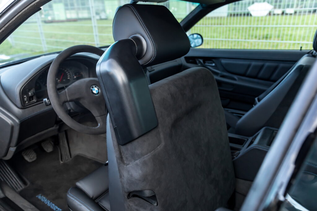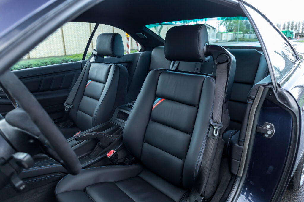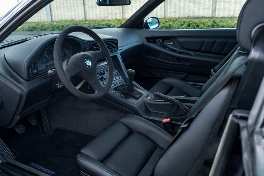 With the exception of the much bigger wheels, the only external changes were the M-style mirrors, a rear spoiler lip, and the front and back skirts borrowed from the 850 CSi. As part of its three-year restoration process, the vehicle was also painted and the 2+2 inside reupholstered in leather and Alcantara.