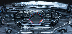A bigger intercooler, new turbines, carbon intake, and an exhaust system made of stainless steel have all been fitted by Manhart to increase power.