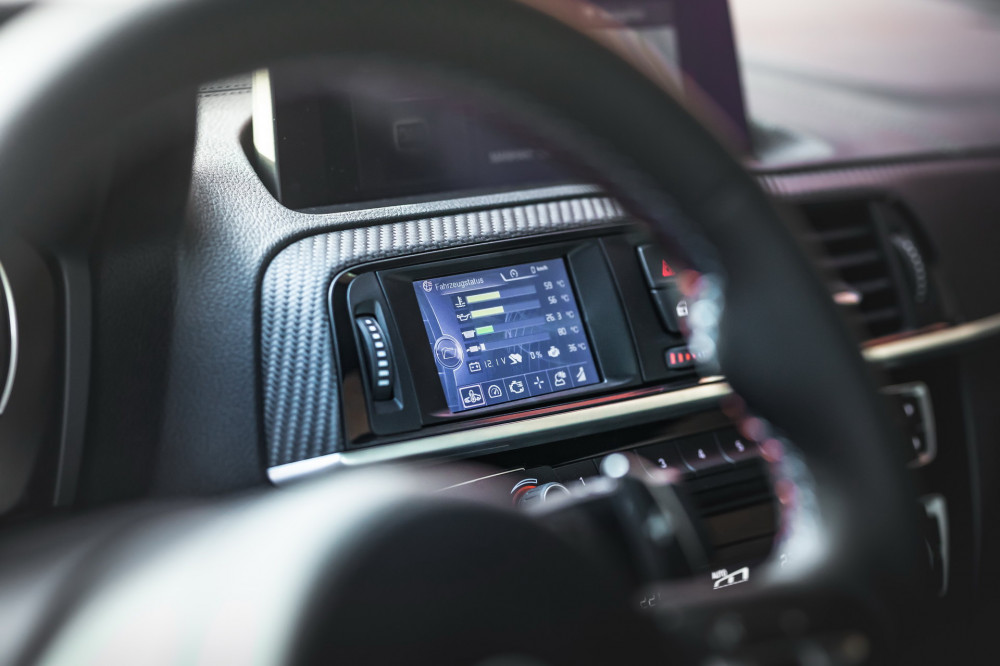 Manhart has also worked a little bit on the model's design offering a new body kit with a new front lip, diffuser, and a carbon fiber boot lid spoiler. The exterior is completed with the 9×20-inch front and 10.5×20-inch rear wheels, wrapped in 245/30 and 285/25 tires. As you've noticed already, the MH2 500 features silver trims instead of the usual gold trim on the outside, contrasting beautifully with the black exterior. The interior has upgrades of an additional display inside to replace the left central air vent and seats and a steering wheel with black leather contrasting with the blue-turquoise stitches.