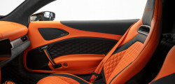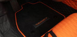 New wheels, wider fenders, bigger air intakes, and longer skirts make a statement. A massive wing, an engine cover with vents, and a double diffuser with four exhaust pipes are visible in the rear. Every Mansory creation allows the owner to customize the MCX Pergusa's interior to their unique preferences. This version's quilted leather upholstery is orange and black and continues into the footwell and floor mats.