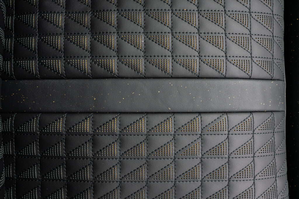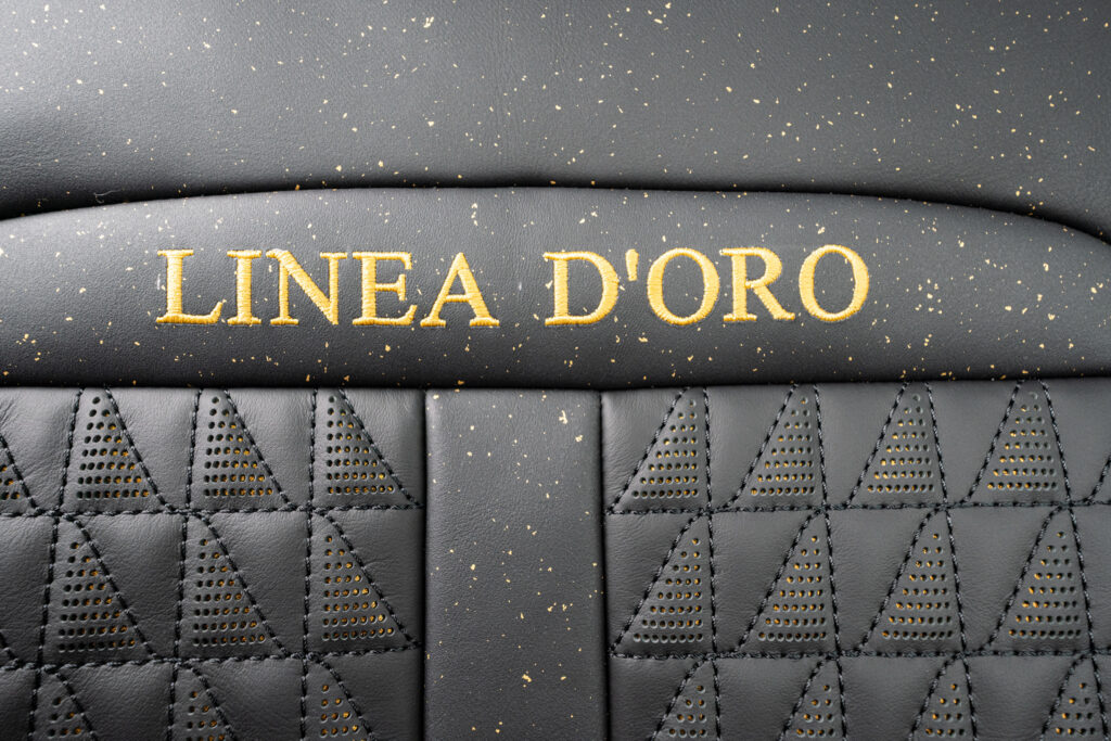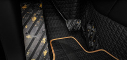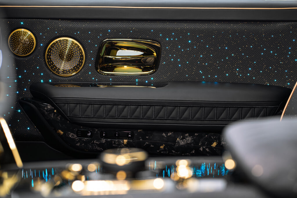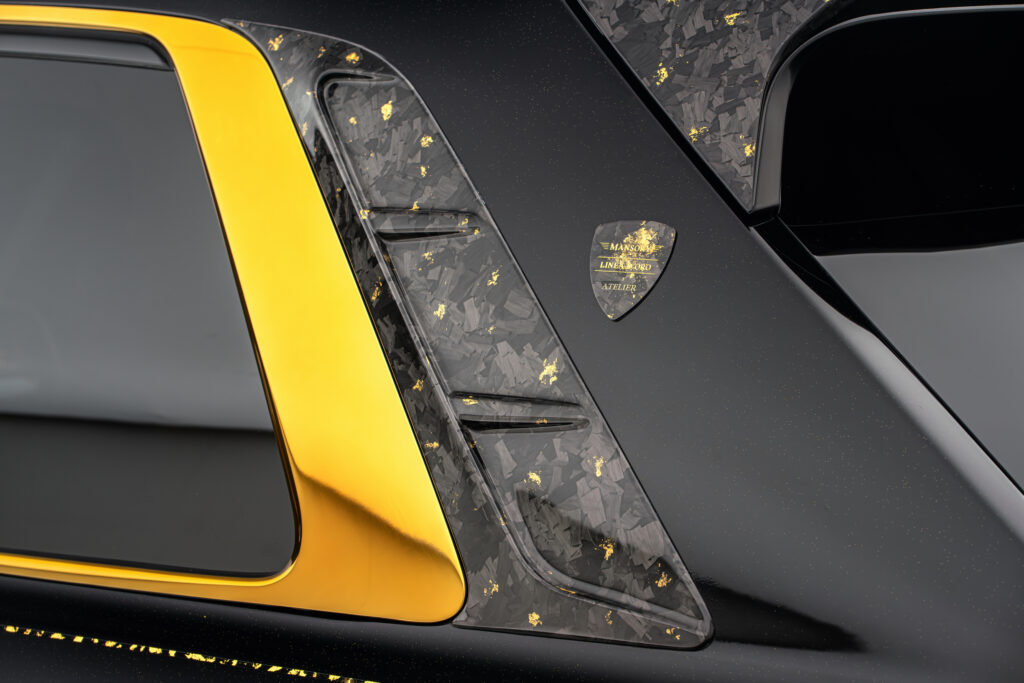 Also installed are a set of gold-finished forged wheels measuring 24 inches in diameter. Inside, beautiful black leather has been used to reline the seats, and little golden accents, such as stitching and piping, have been added. Moreover, future owners will be delighted to see plenty of forged carbon fiber components and shiny gold accents that match the exterior.