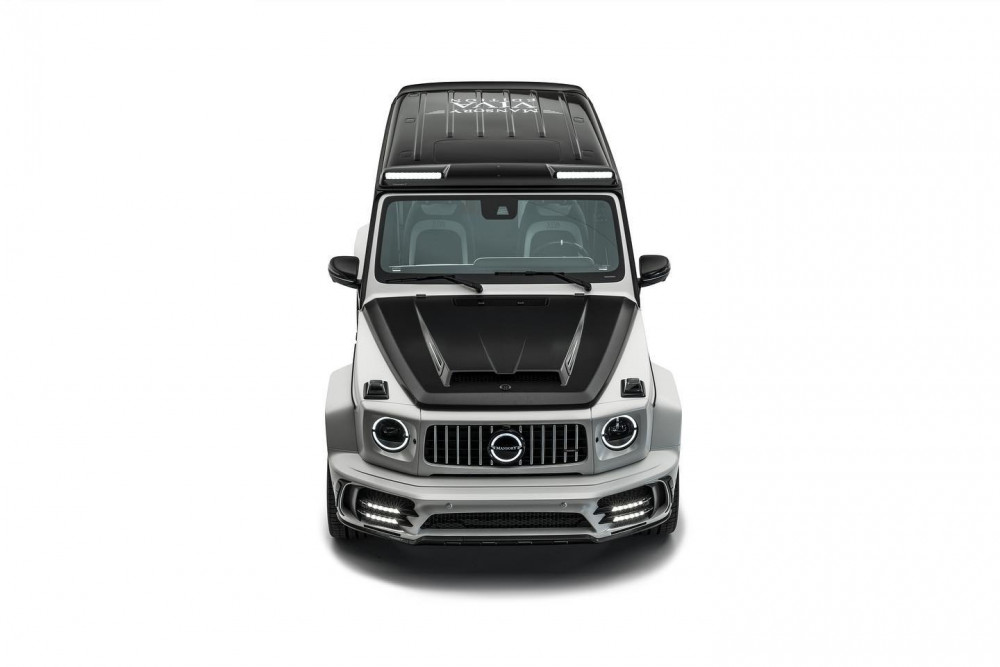 Other modifications include those made to the sides of the G-Class bringing along new carbon fiber vents behind the front wheels, black-tipped side-exiting tailpipes, and a set of customed black wheels. The rear side also got a Mansory workout that includes the tuner’s spare wheel cover, black badging, and a new bumper with revised air vents. You can even get a painted section on the roof surprise that comes with two LED driving lights mounted above the windshield.