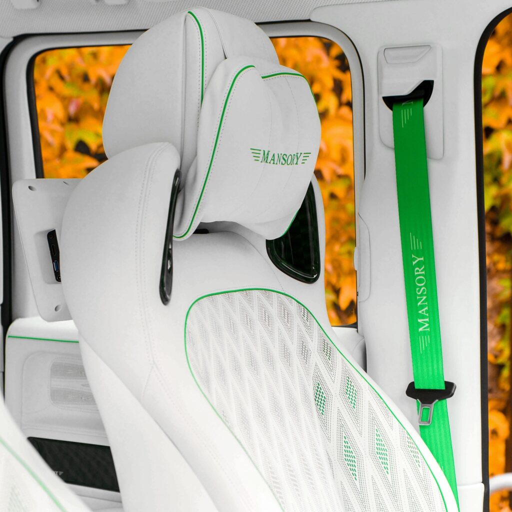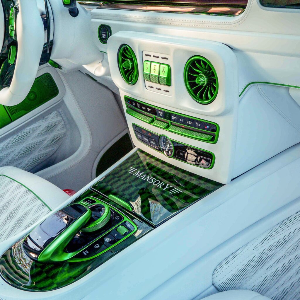 Incorporating bright green seat belts—like a highlighter left to its own devices in the rear seat—was Mansory's way of adding a splash of boldness. The air vents and the majority of the buttons and switches have been color-matched to the outside paint job, showcasing the attention to detail.