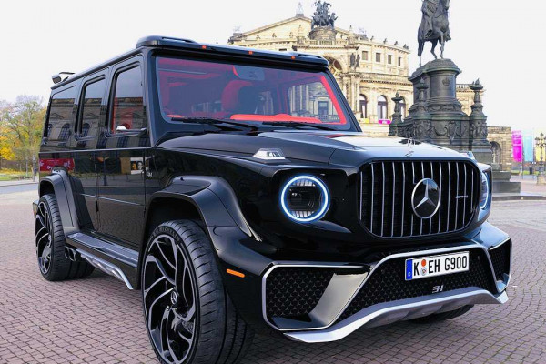 Mercedes G-Class has been redesigned as the finest luxury Maybach G900 by professional automotive designer Emre Husmen. The G900's Maybach logo is prominently displayed on the front, rear, and side of the vehicle, as well as on the 24-spoke Maybach wheels.