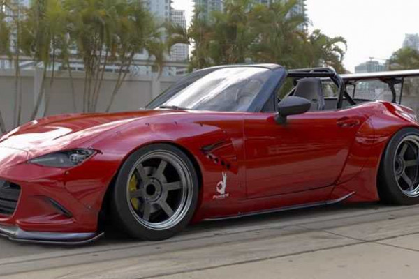 The MX-5 got the wide-body kit and some other visual elements that include a wide fender, front/rear bumper lips, side skirts, roll bar, huge rear spoiler, and deep-dish wheels.
