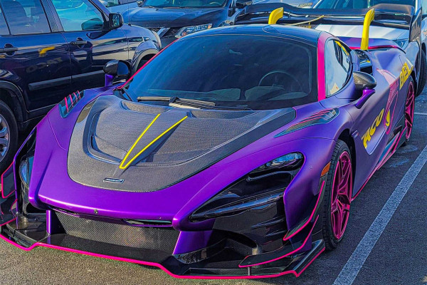 Although the body kit is sufficient to modify the McLaren 720S, the owner of this vehicle clearly desired more. As a result, it has been equipped with a set of hot pink wheels and a Taco Bell-themed wrap consisting of matte purple parts with yellow and pink accents. What are your impressions about this?