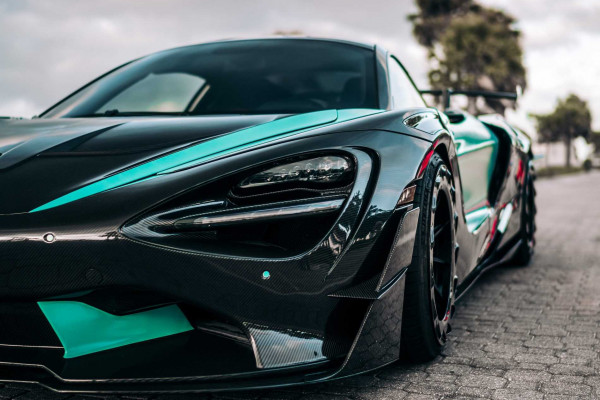 Almost all of the carbon fiber parts of the bodykit were handcrafted, the 3D printed components are within the bumper's structures, aerodynamic ducting, and in linkages of the rear wing. The extra additions of the carbon-fiber parts increases the 720S' weight up to 268 lbs.
