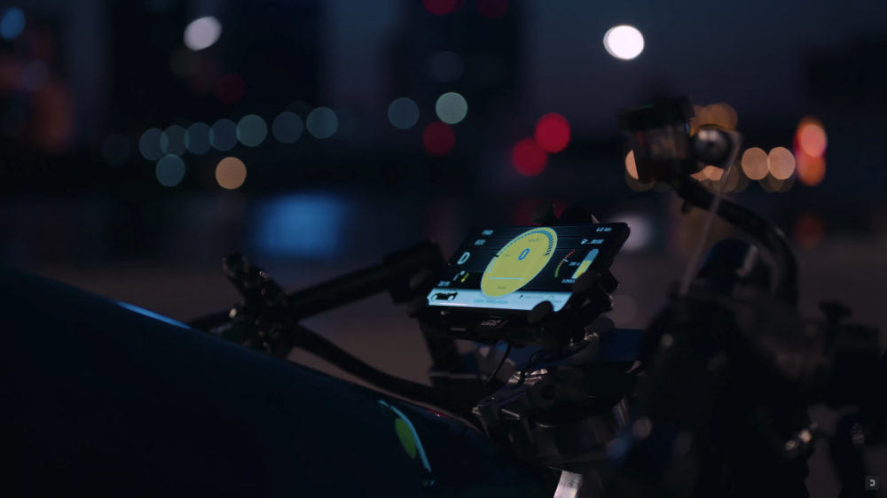Da Vinci DC100 features a full-color dash with Brembo and Ohlins running components. The creep feature, which gets the bike going forward gently when you let off of the brake lever, works similarly to an automatic gearbox.