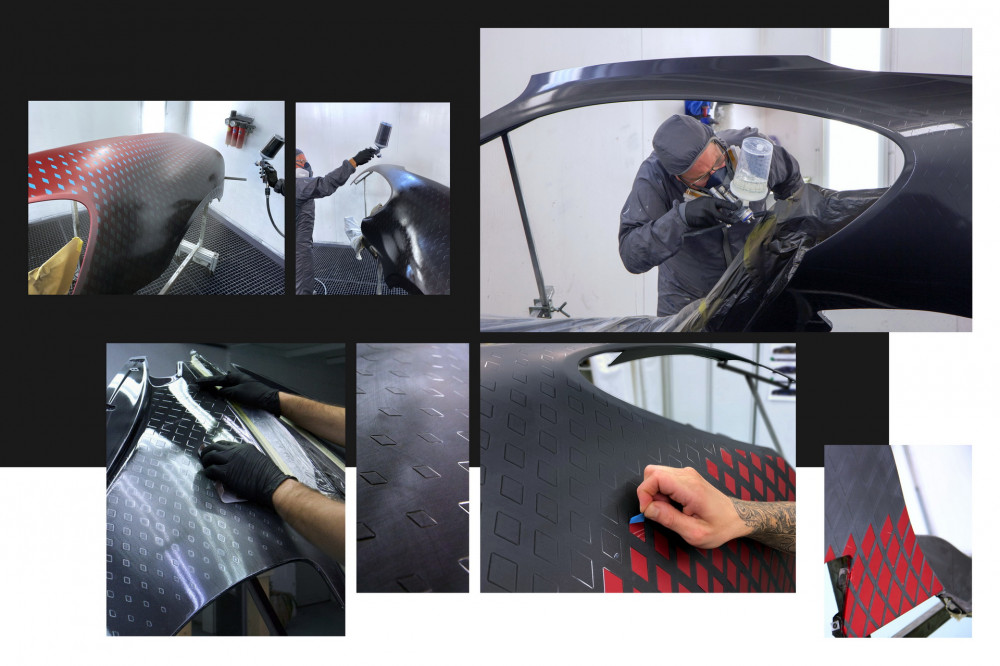 The pattern was later dubbed as ‘Customer Special Red’ and ‘Graphite’ designed to run precisely starting from the front to rear, to match the entire hypercar’s silhouette. As easy as it might seem, the team worked up to two years to implement the idea. They used the CAD data, countless simulations, and a test vehicle to see alignment from all points of view in real 3D dimensions.