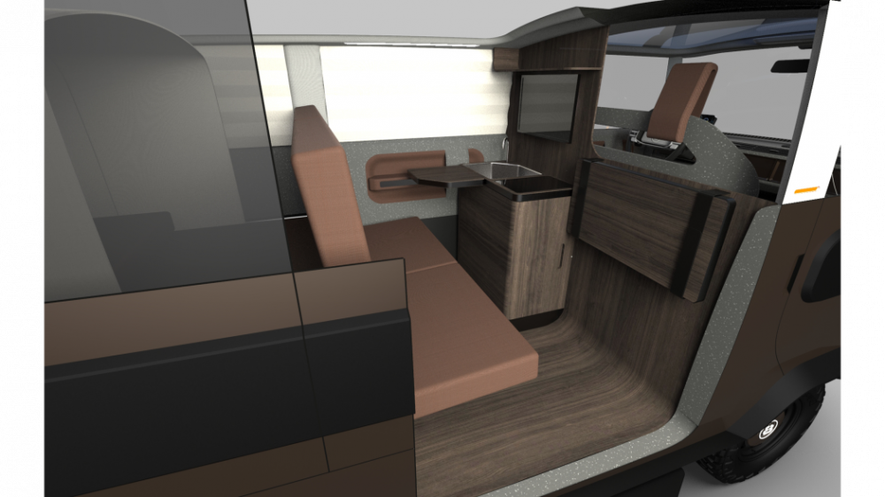 Meet the coolest Electric Brands eBussy, with its modular design of passenger- and cargo-carrying configurations. This EV envisions everything from a basic platform to two- and four-door pickup trucks and everything in between.