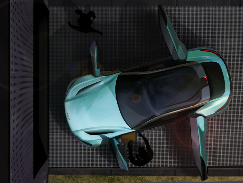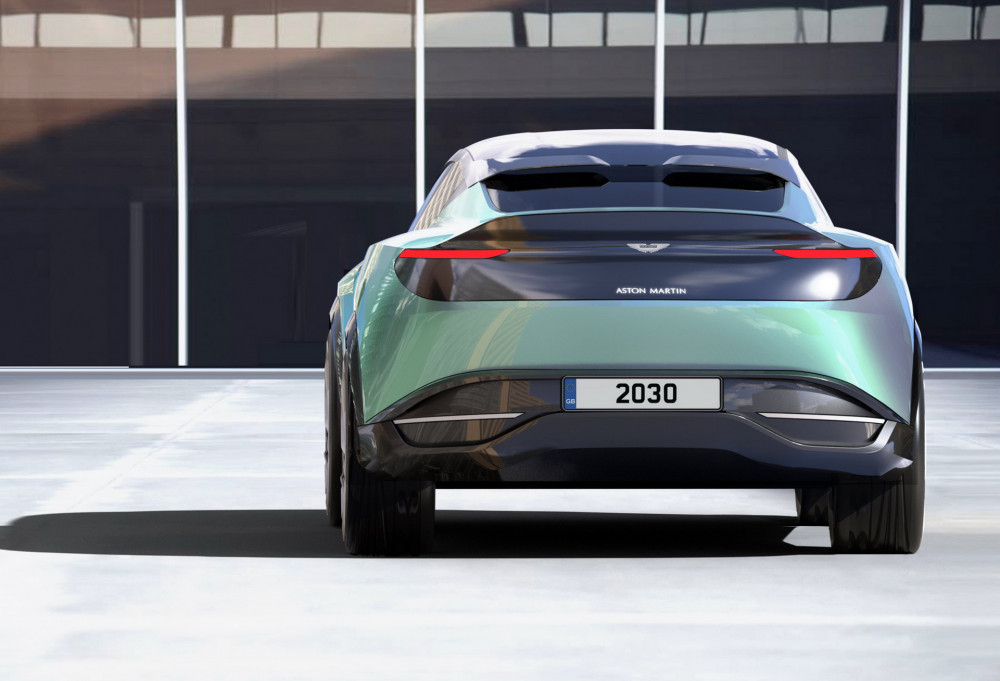 Most of his work was done to the doors that become an intriguing element of the rendered Aston Martin. Han did a great visual trick - he made an exterior that mostly appears to have four doors, that when opened, reveal access to only two storage areas. The innovative designer's mind created a repackaging solution that harnesses the freed-up space with the electric motors and his signature long bonnet. According to Han, the luggage in the dash-to-axle is the key design feature of this vehicle, allowing the window graphic to extended into the luggage compartment, showcasing this unique function.