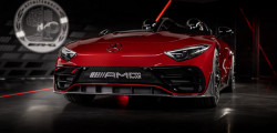 Mercedes-AMG has unveiled the Mythos PureSpeed, the first model in its lineup. It is an SL-based roadster with F1-inspired design elements, like a halo-style roll cage. The vehicle will go into restricted production next year, with a total of 250 vehicles going to a select group of Mercedes' most ardent collectors.