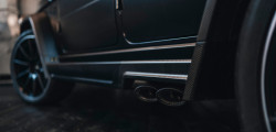 Among other features, the G805's bonnet has massive air intakes, and its wheel arches now include carbon fiber extensions. Some other additions to the car include a carbon fiber roof spoiler, different running boards with LED entry lights, and an all-carbon-fiber redesigned rear bumper.