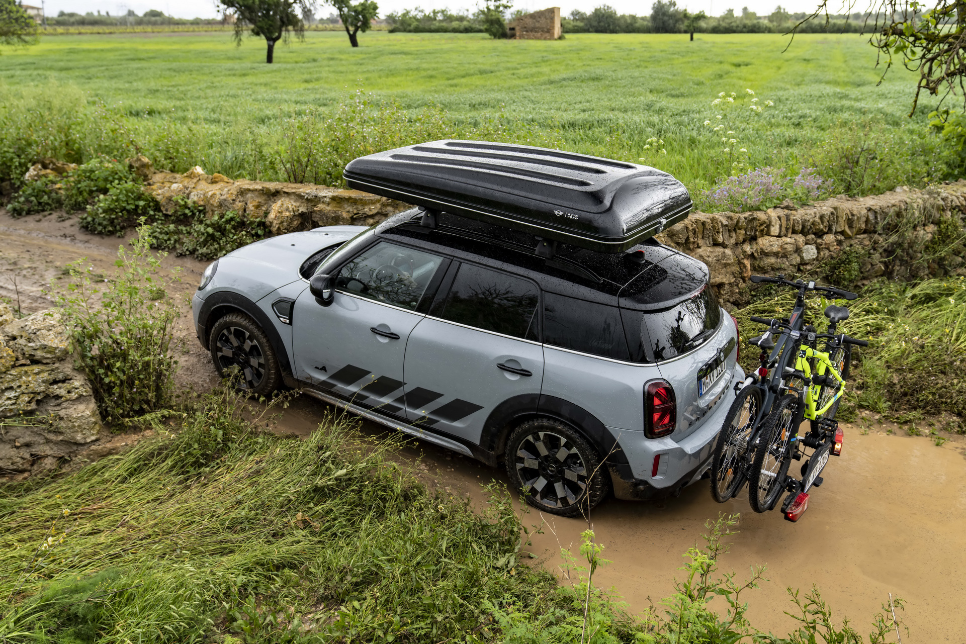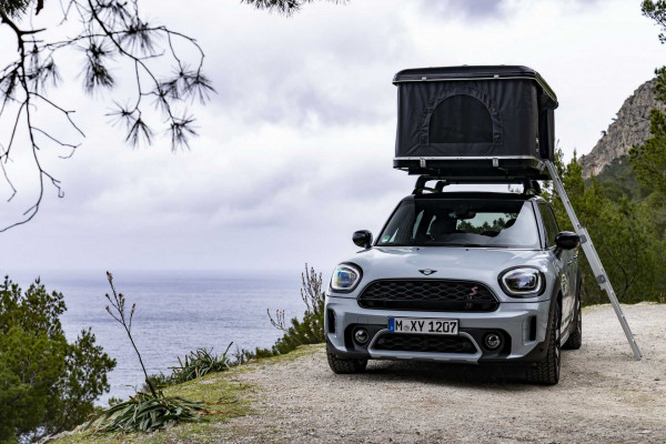 A rear folding bike rack that can accommodate two mountain bikes is offered to go along with the new set of wheels and tires. With the assistance of Autohome, Mini has also developed a roof tent for the Cooper S Countryman ALL4. Quickly set up, this tent is stored in a tiny box. The tent has a foldable aluminum ladder for convenient access.
