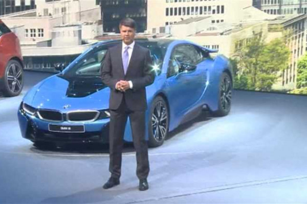 BMW CEO Harald Krueger collapses at a presentation during the media day at the Frankfurt Motor Show (IAA) in Frankfurt, Germany, on September 15, 2015.