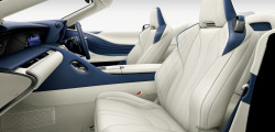 Lexus LC500 Coupe is also offered in Terrane Khaki Mica Metallic, a dark green metallic paint color, as well as new 21-inch forged aluminum wheels in polished or black paint. There is a new Marine Blue folding soft-top available for anyone interested in an LC500 Convertible, which goes wonderfully with the new Blue & White interior. The addition of orange brake calipers completes the redesigned package.