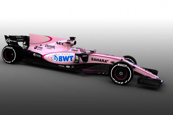 Force India has presented a new and surprising color scheme for the new season of F1 in 2017. Why surprising? Because the scheme is pink, silver and magenta livery, which will also extend to the drivers' helmets, as well.