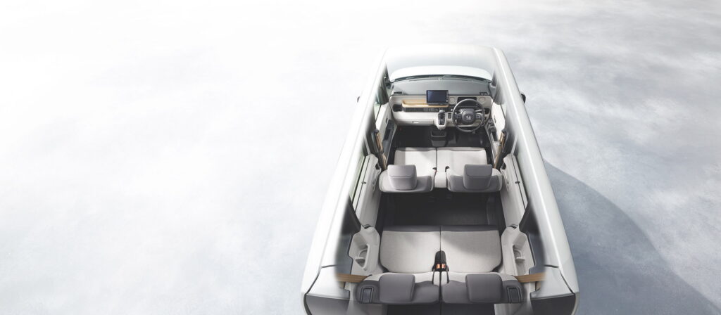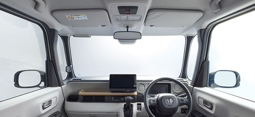 Honda N-Box has a 9-inch touchscreen for infotainment and a 7-inch digital instrument cluster inside. In addition, buyers will also discover some practical features such as side pockets, a newly designed steering wheel, cupholders, and a new shelf. The Honda Sensing suite and front and side airbags are included as standard equipment, showing that safety features are given top priority.