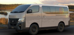The Caravan Mountain Base concept will also be unveiled, which has a woodgrain wrap and a strong textured surface. There's also an LED light bar and Beadlock-style wheels with beefy tires. The van comes with a foldout solar panel positioned on the roof because it was meant to be utilized in isolated regions. Solar panels have also been used to replace most of the side windows.