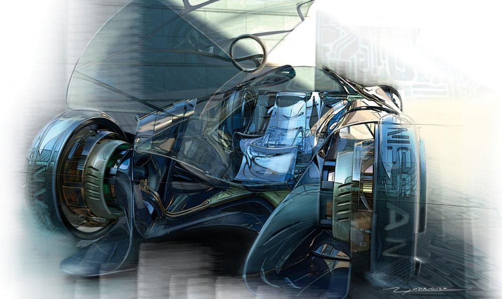 There is a Slim biobattery that ensures the car with maximum stability. The concentric engines of this concept have been brevetted and they provide features like triple duty by functioning as the car's steering and suspension groups, through propulsion and magnetic levitation.