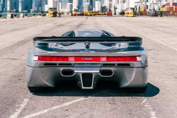 The Mercedes-Benz 5.6-liter V8 was obtained by Lotec, but it was equipped with twin Garrett turbochargers. The vehicle's 1,000 horsepower was sent to the rear axle using a Hewland five-speed racing gearbox. After four years of planning and construction at a cost of $3.4 million, the C1000 was shown to the public in 1995 with a stated peak speed of 268 miles per hour.