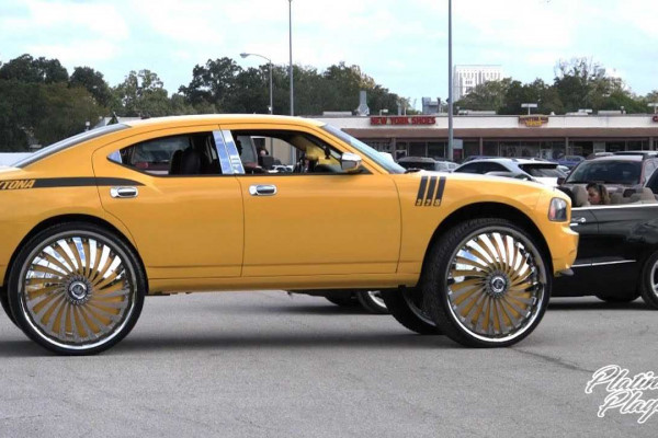 A Dodge Charger Daytona has been embellished with oversized 32-inch wheels. Why? Maybe, this was a desperate attempt of getting some attention. Or maybe, this is all an exercise of creativity. Who knows?