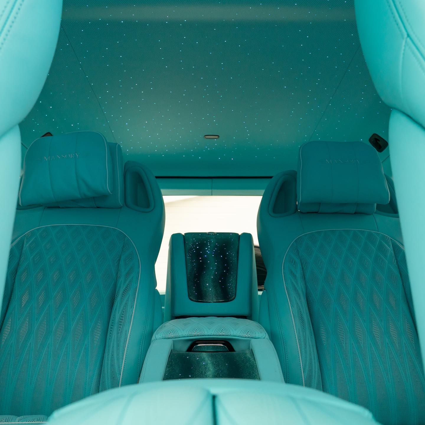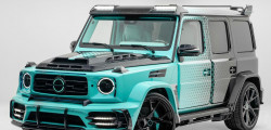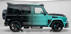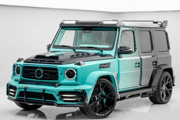 The latest interpretation of the Mercedes G-Class by Mansory is bolder than ever. The color scheme of the Mercedes-AMG G63, which features an algorithmic fade effect, draws attention right away. The paint job begins with a beautiful shade of turquoise at the front and then flawlessly transitions into a glossy black.